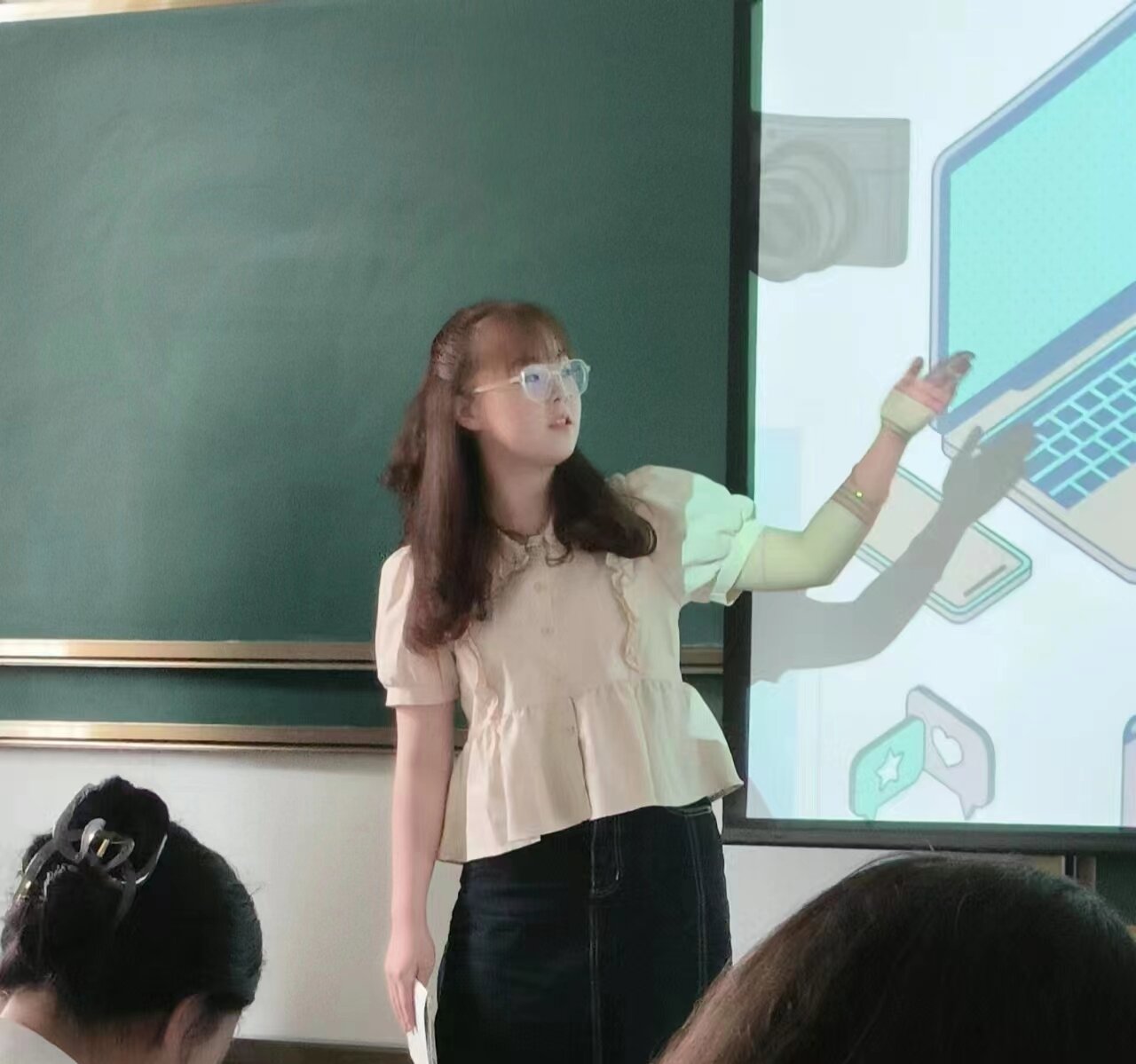 何晨阳,女,数字媒体技术专业2101班学生。她担任班级学习委员一职,负责大家日常课堂的学习管理、课堂作业的收取,并及时向同学们传达老师布置的作业和要求。同时,担任p站视频