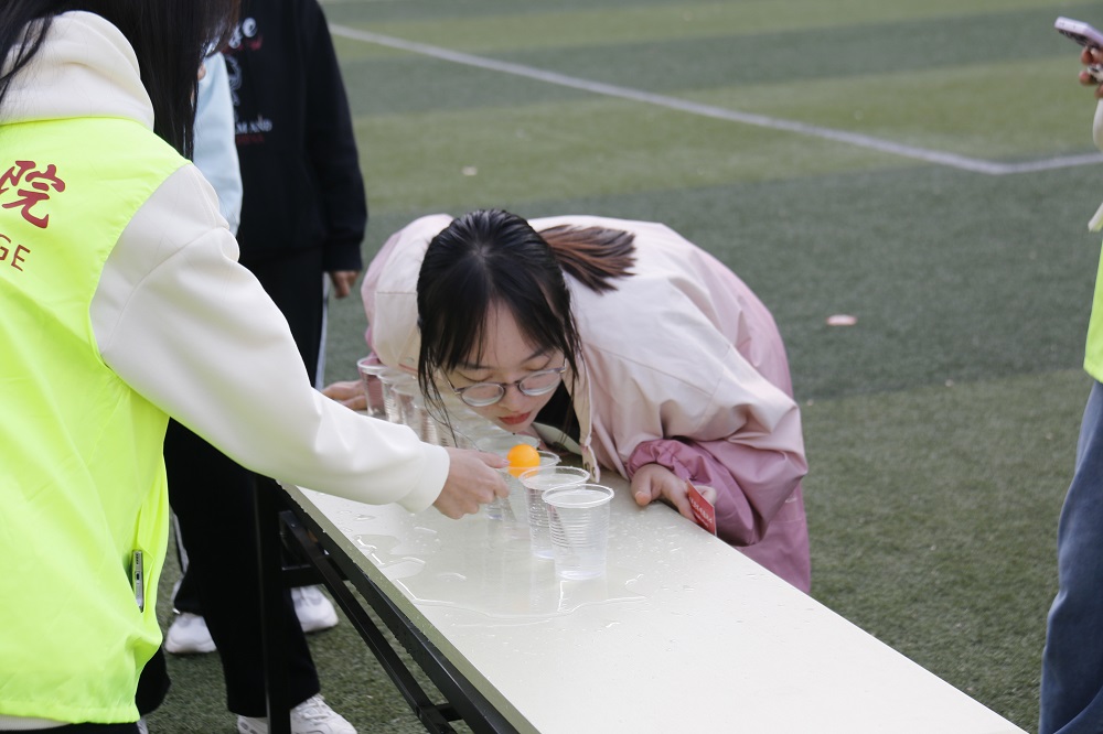 此次趣味运动会共有两个阶段:上午为团体趣味竞赛项目,下午为个人趣味闯关项目。团体项目共有7个,包括1分钟踢毽球、齐头并进、1分钟双摇跳绳、无敌风火轮、排山倒海、3分钟跳长绳比赛和拔河比赛;个人项目则采用闯关制,共设置了8个关卡,包括心理知识大闯关、袋鼠跳、企鹅漫步、我有难度你来挑战、投掷羽毛球入桶、奋力跳跳跳、带球绕杯以及大力吹吹吹,全部完成即为成功通关。各专业的运动代表团队和运动员们摩拳擦掌,奋勇争先,整个运动会的气氛热烈而又紧张,扣人心弦而又不失活泼。经过一天的激烈角逐,新传类专业、法学专业、管理类专业和经贸类专业(并列)分获团体项目的前三名,共有139名同学在规定时间内完成个人项目获得通关,书院老师对表现优异的运动员现场颁奖并合影留念。