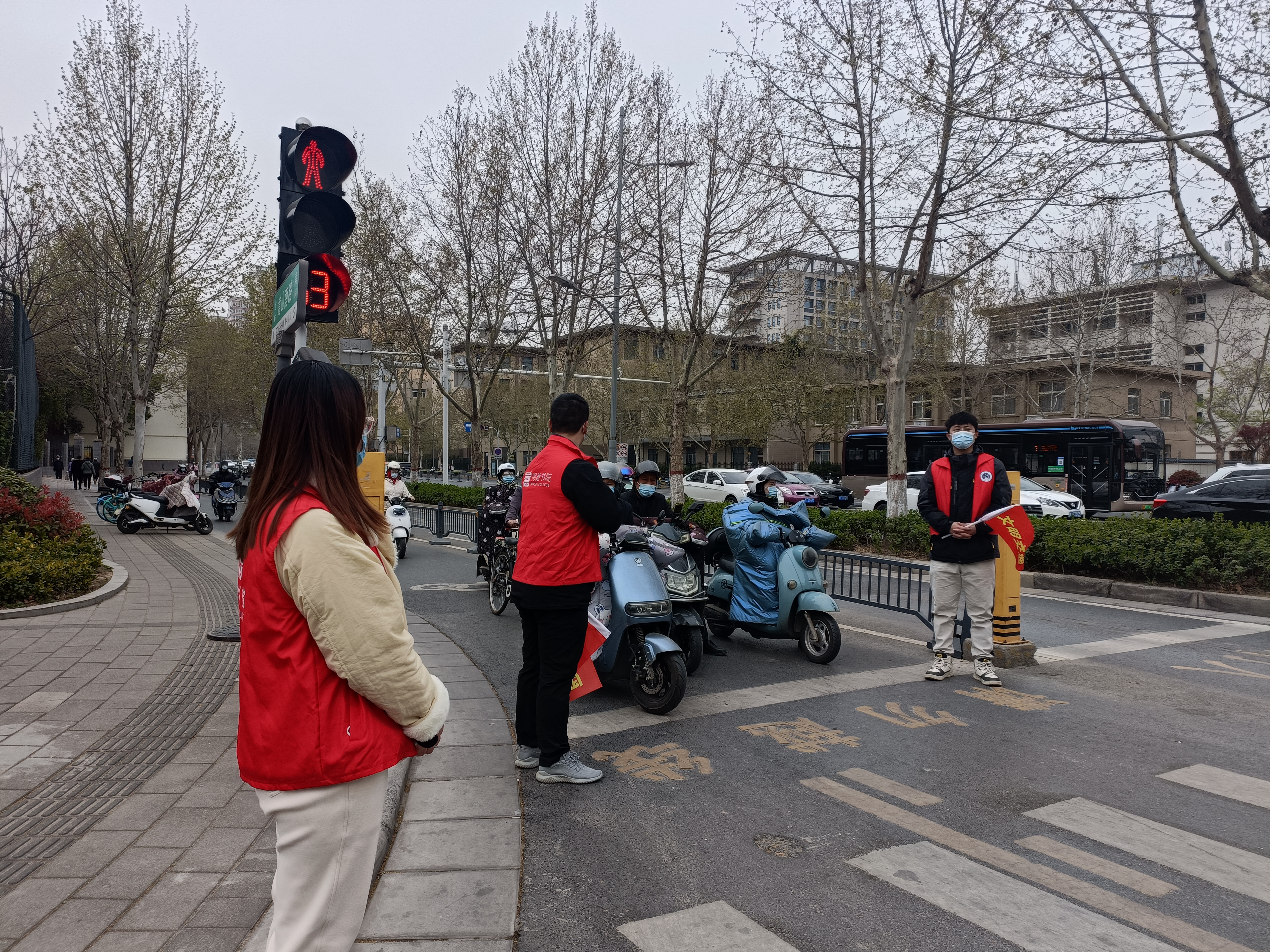组织学生党员志愿者在中原区嵩山路与陇海路口开展“文明交通,平安出行”志愿服务。