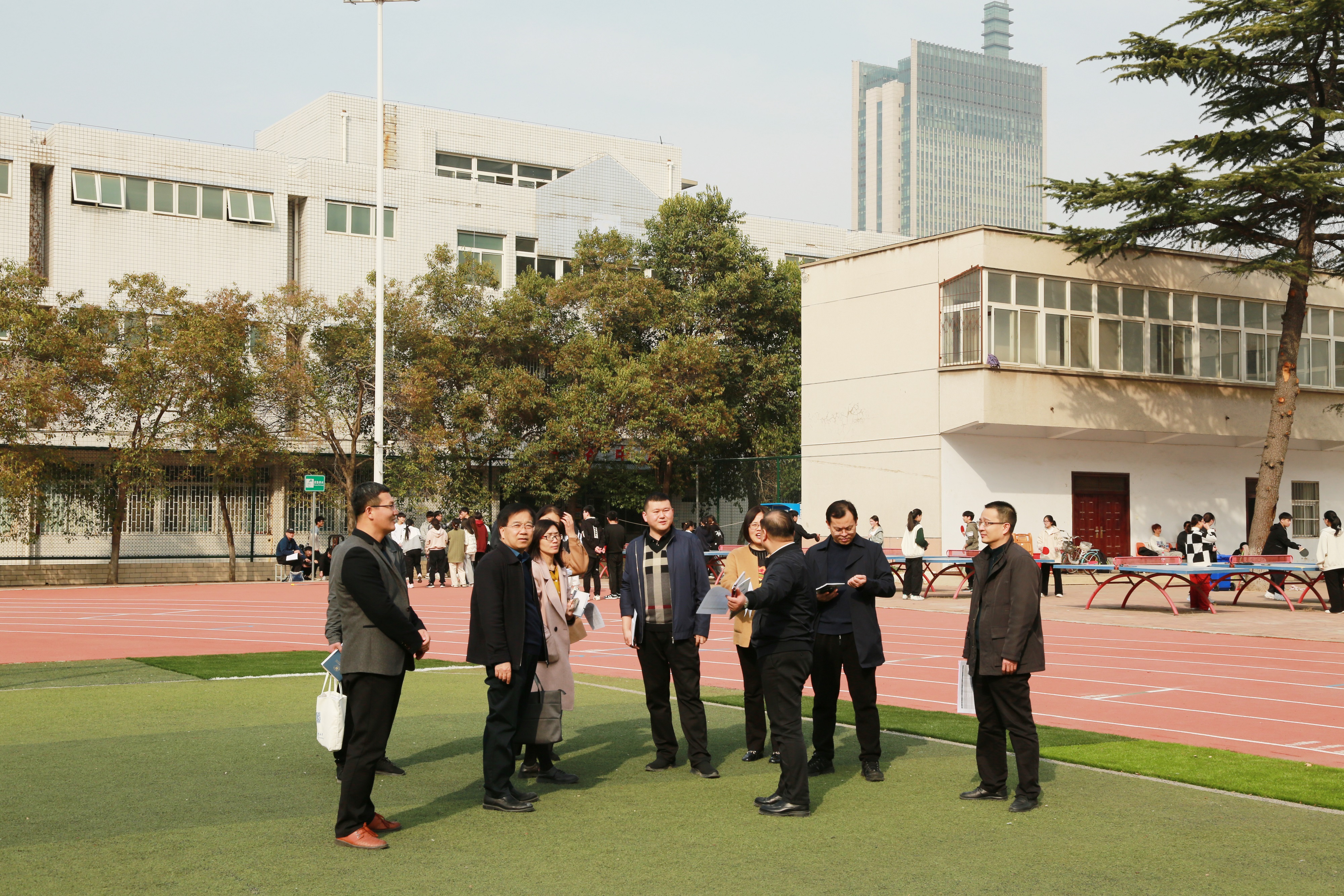 教务部一行到体育场查看体育课教学情况