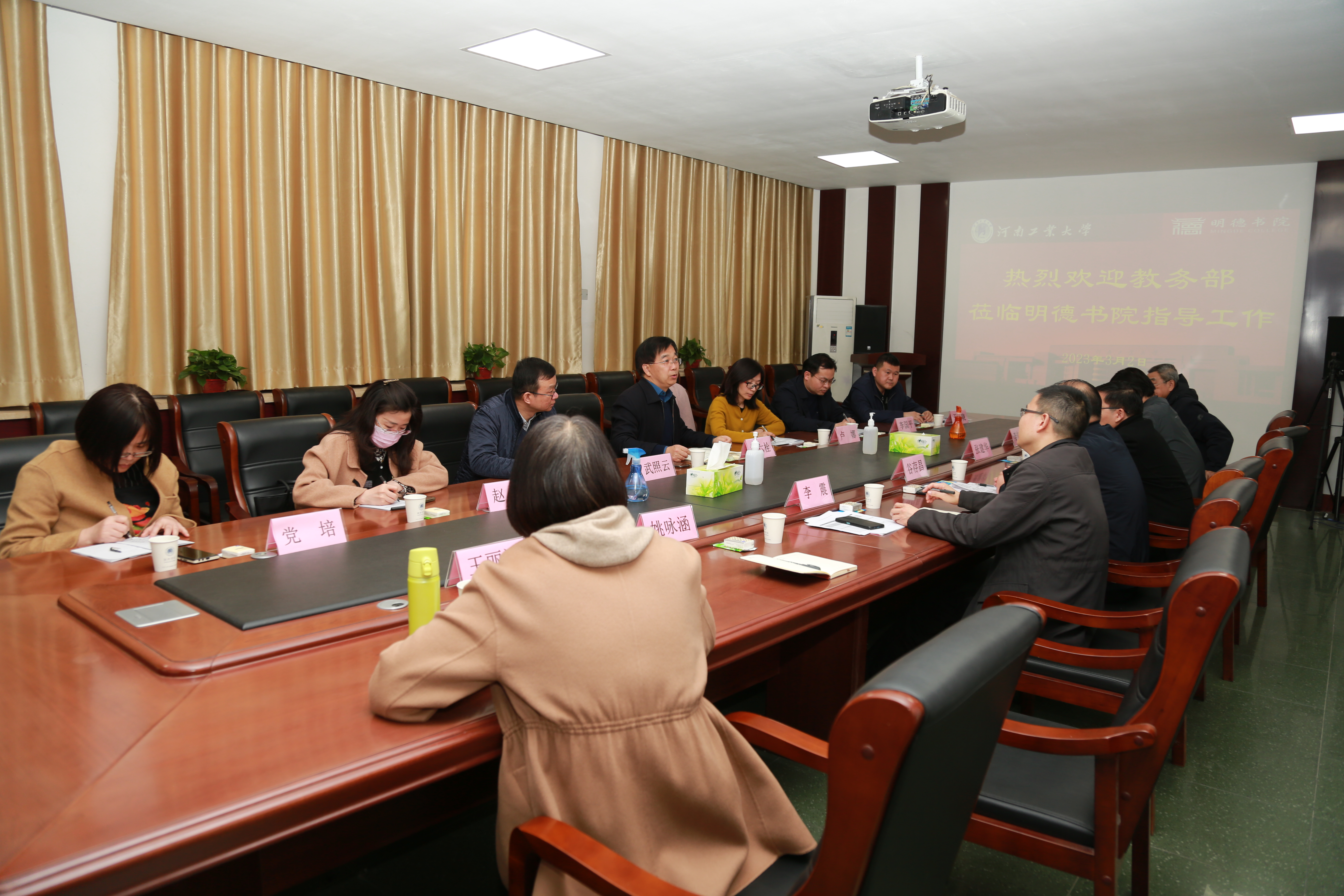 为扎实推进新学期教学工作,3月2日下午,教务部副主任杨六栓带领教务处、课程中心、教师教学发展中心、教学评估与质量管理中心负责同志,到嵩山路校区调研指导教学工作。