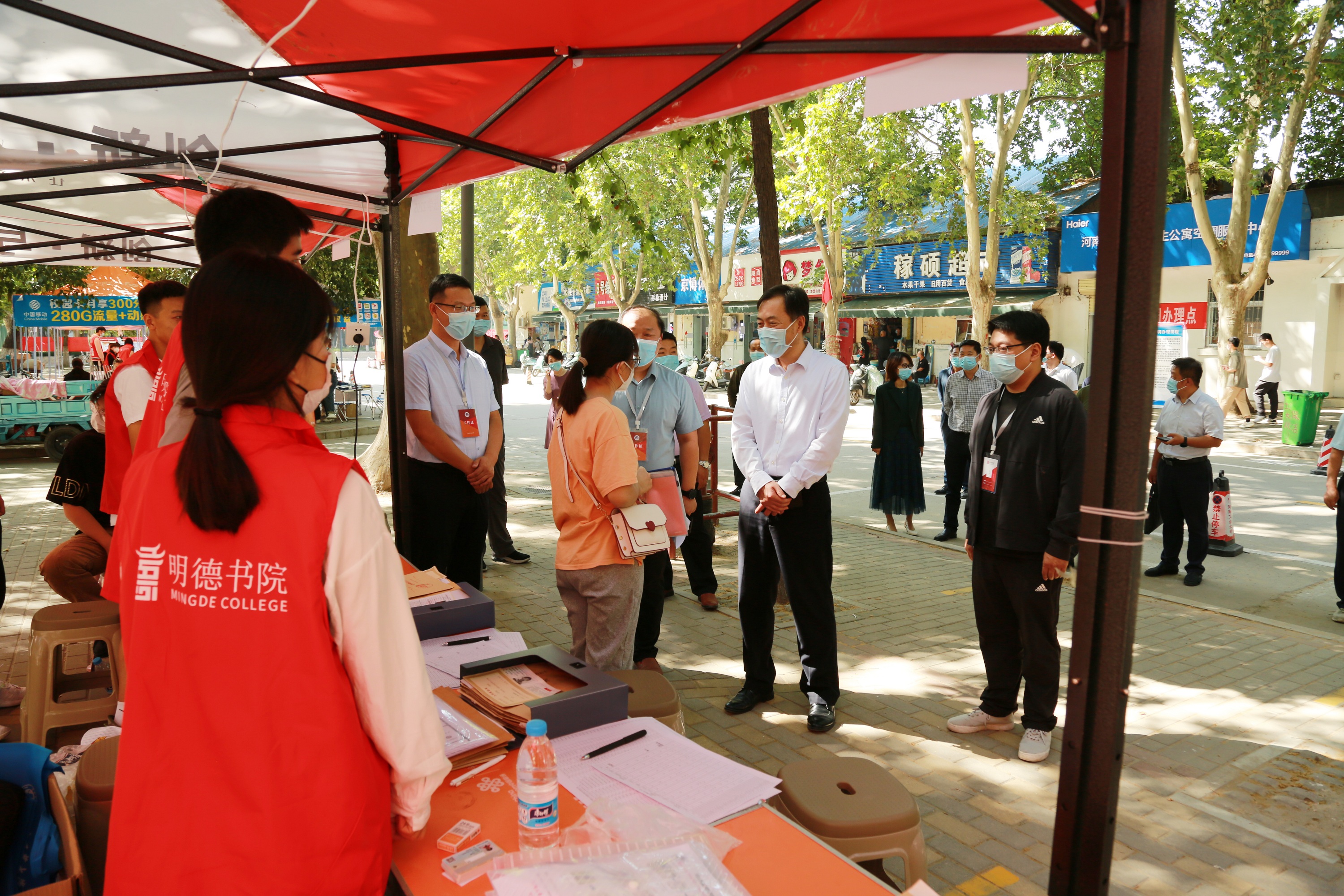 9月26日上午,校长李成伟,校党委副书记、工会主席李学雷,副校长李焕锋,在校长办公室、党委学工部、教学评估与质量管理中心、经济贸易学院和法学院相关负责人陪同下,深入嵩山路校区新生报到现场,慰问迎新工作人员和学生志愿者,与现场新生进行亲切交流,欢迎同学们入驻嵩山路校区,勉励同学们尽快适应大学生活,努力学习文化知识,开启大学新征程,书写人生新辉煌。