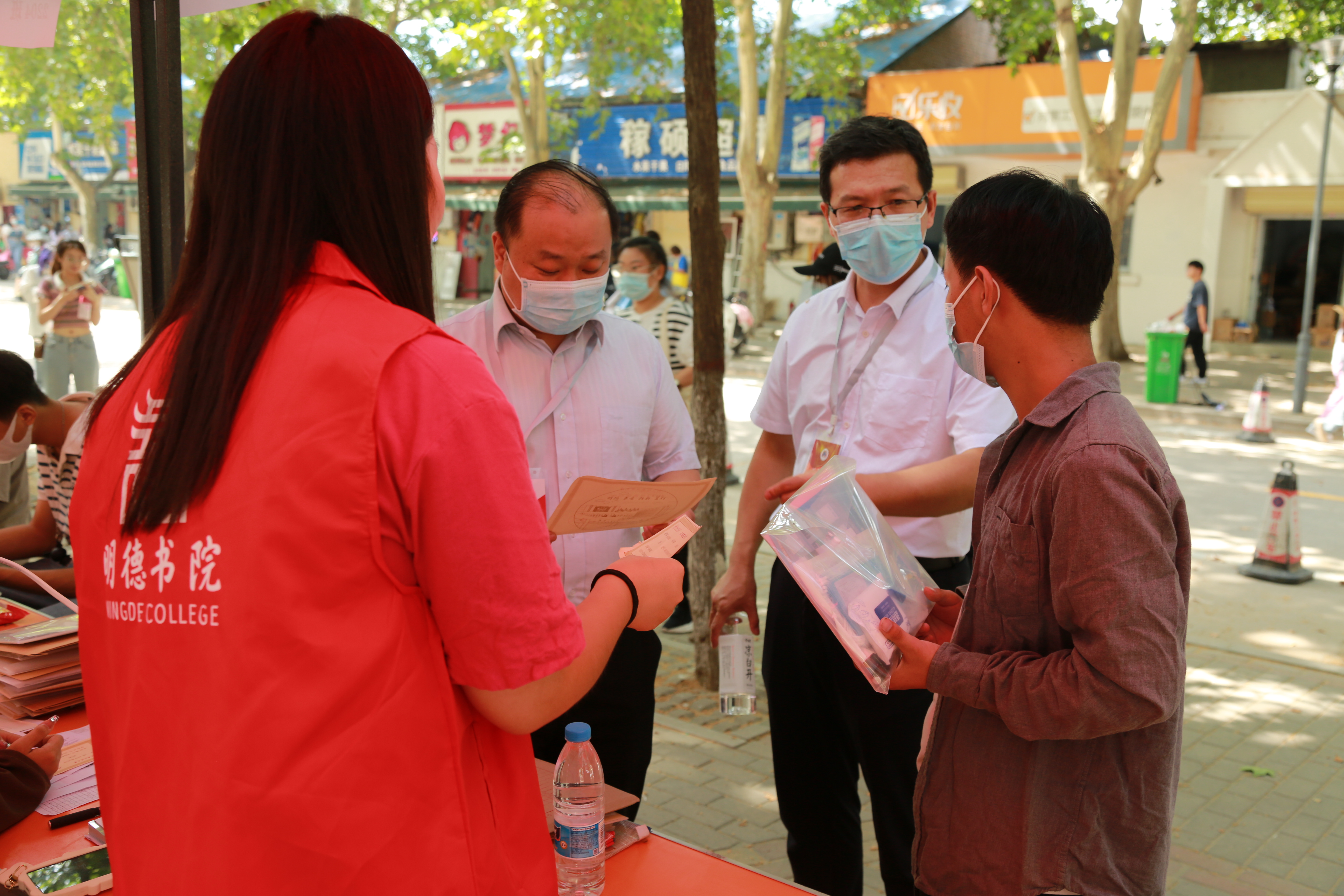 党委书记魏朝举、院长谷存昌、副书记刘飞翔、学工办主任王荣健等老师深入学生宿舍和校园迎新现场,为已经恢复线下教学的高年级同学和参与迎新工作的师生送去关心和问候。