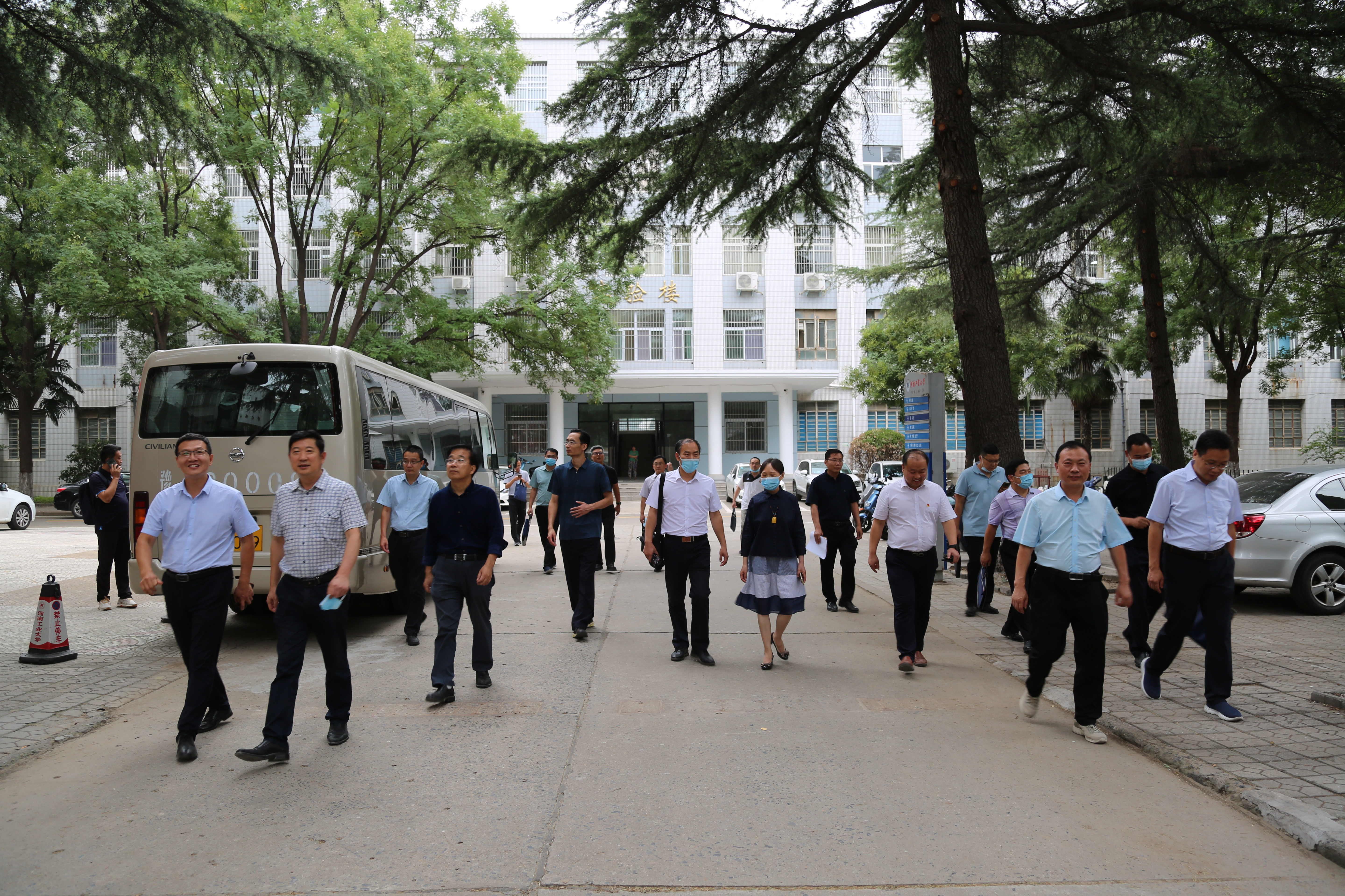 首先,曹健、李焕锋带领参会人员,在东校区相关单位的陪同下实地考察了嵩山路校区教学楼、实验楼、学生宿舍、餐厅、田径场、图书馆等办学条件,详细了解了开学前的各项准备工作。
