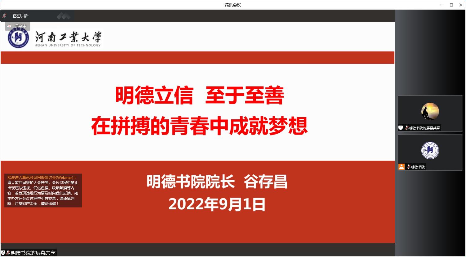 通过网络直播举行2022级新生开学典礼,书院党政领导班子、全体教师、2022级全体新生参加了典礼活动,典礼由院党委书记魏朝举主持。