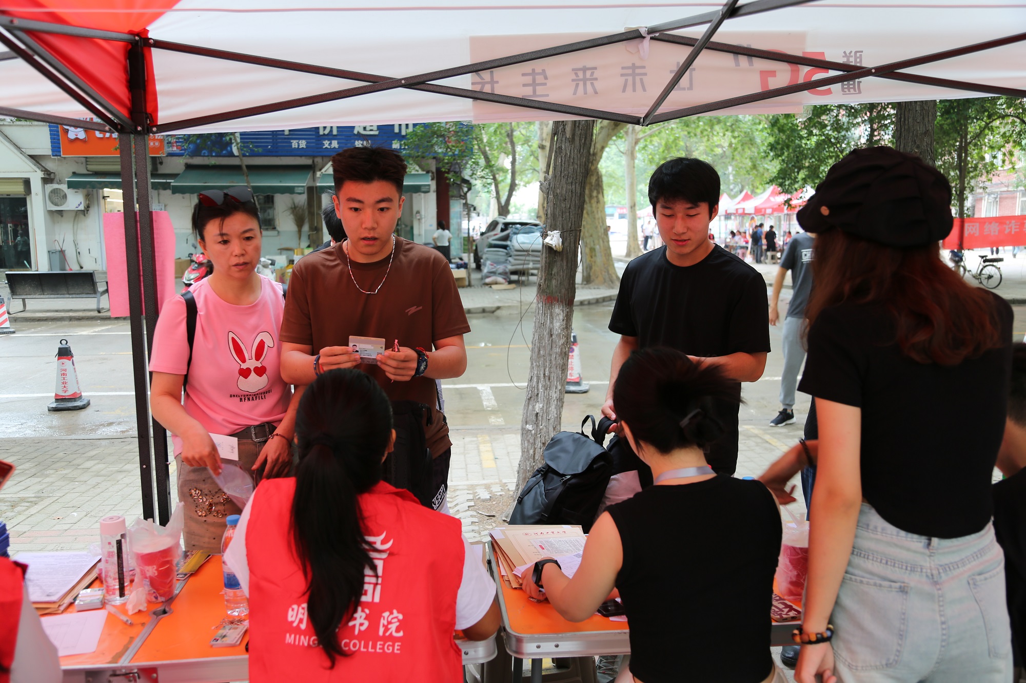 全院师生积极配合,全心全意投入迎新现场,确保迎新工作安全有序开展。全天值守各个岗位的迎新人员,耐心细致的为新生答疑解惑;学生志愿者们忙碌的身影穿梭在校园的各个角落,他们热情引导新生,协助新生完成入学手续办理,帮助学弟学妹搬运行李。通过周密的安排和细致的关怀,积极了解新生需求、主动回应家长疑虑,彰显书院独特的文化特色和精神风貌,受到了广大家长和新生的称赞。