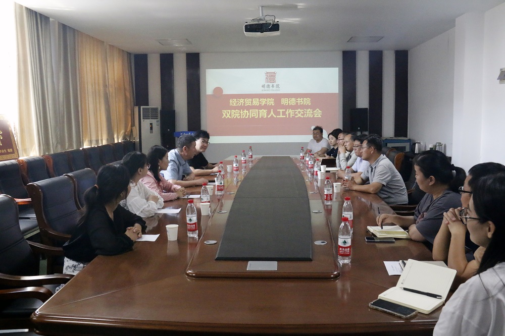 在嵩山路校区办公楼207会议室召开双院协同育人工作交流会。经济贸易学院党委书记李刚、党委副书记岳鹏珍,p站视频