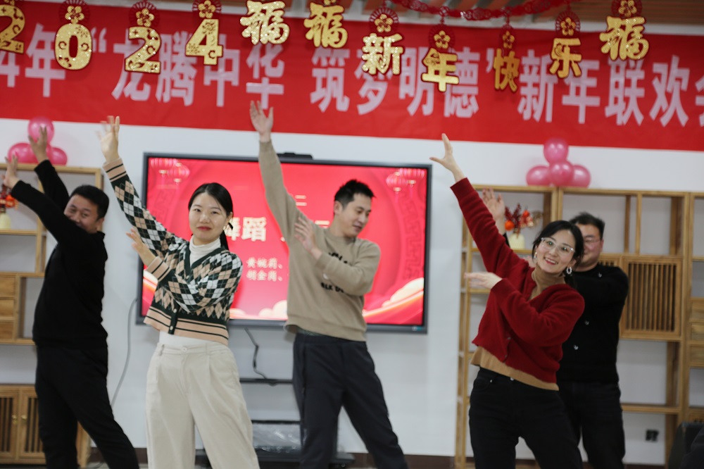 联欢会节目丰富多彩,充展现了教职工们的多才多艺和昂扬向上的精神风貌。诗歌朗诵《中原颂》表达了教职工们对祖国的热爱和对美好生活的向往;舞蹈《好运来》更是将现场气氛推向了高潮;在一片欢声笑语中,三句半节目登场了,诙谐幽默的台词逗笑观众;最后以欢快的《兔子舞》带动全员动起来。此外,联欢会还设置了趣味游戏,教职工们积极参与,现场气氛十分热烈,大家在欢声笑语中拉近了彼此的距离。