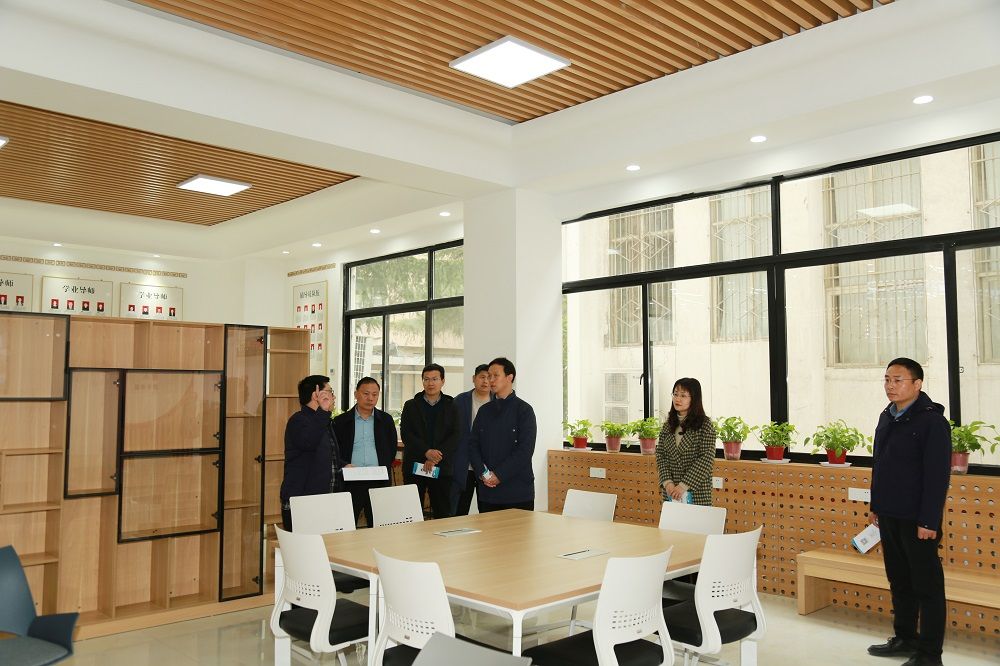 黄泽峰一行实地走访了明德社区的学生服务中心、学生沙龙空间、心理咨询室、导师工作室、朋辈研讨室、人文素养课程工坊、多功能厅和党团驿站,详细了解明德社区“1+4+N”社区架构中学生服务、素质拓展、朋辈成长和党团引领四大功能区域的规划布局和44个功能房间的建设情况,并与相关单位进行座谈。