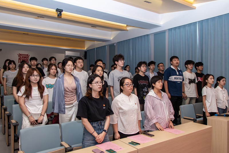 在热烈的掌声中,老师们为新团员代表佩戴了团徽。第五期优秀团员代表张祺带领全体新团员庄严宣誓,铿锵誓言掷地有声,表达了他们对团组织的郑重承诺与新时代的青春宣言。新团员代表陈姝帆分享了个人成长历程,并倡议全体新团员奋楫笃行,为团旗增光、为书院添彩。