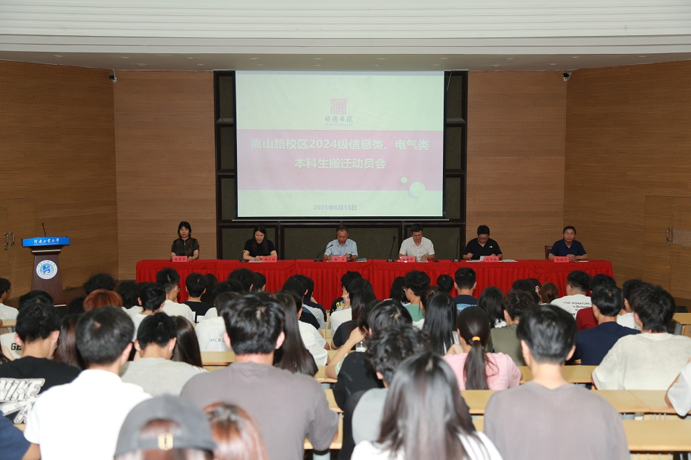 2024级本科生跨校区搬迁工作实施方案》,从时间节点、交通保障、行李托运到应急预案,为学子们勾勒出清晰有序的搬迁路线图,提醒同学们本次搬迁具体注意事项。信息类专业学生聂泽浩和电气类专业学生王金硕分别代表2024级同学上台发言,他们回顾了这一年在p站视频