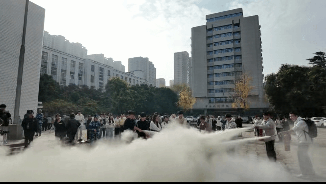 (东校区管委会)消防科于喷泉广场开展消防器材实操培训活动。现场通过专业讲解、规范演示与学生亲手参与相结合的方式,将“纸上安全知识”转化为实用应急技能,帮助同学们消除对消防器材的陌生感与恐惧心理,熟练掌握基础操作方法,以便遇火情时能科学自救、降低伤害。