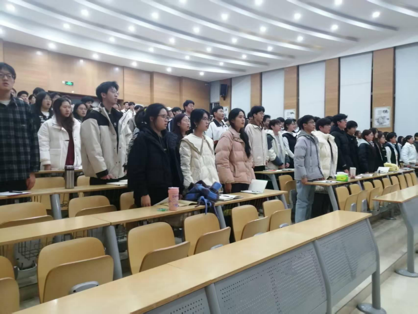 全体起立,奏唱国际歌。歌声激昂,信念如磐。本期开班仪式的顺利举行,进一步增强了入党积极分子对党的认识,激发了学员的学习热情,为持续加强书院党的建设、提升学生思想政治教育工作水平奠定了坚实基础。仪式结束后,崔政教授为学员们带来了精彩的第一课。