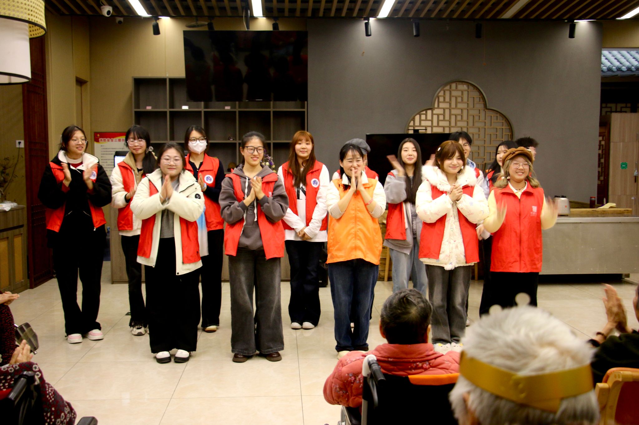 在互动交流环节,同学们如青春使者,分组围坐老人身旁促膝长谈。他们专注倾听老党员的奋斗故事,那些激昂过往与坚定信念,如明灯照亮青年前行路,让大家感受到老一辈的崇高精神。同时,同学们还耐心教老人使用智能手机,助其跨越数字鸿沟。老人们也畅谈对国家发展的感受,对当下幸福晚年生活欣慰不已,对青年寄予厚望。青春与“夕阳”的暖心对话,如暖流般让理论宣讲接地气、有温情,完成红色精神接力传承,现场欢声笑语,气氛热烈融洽。
