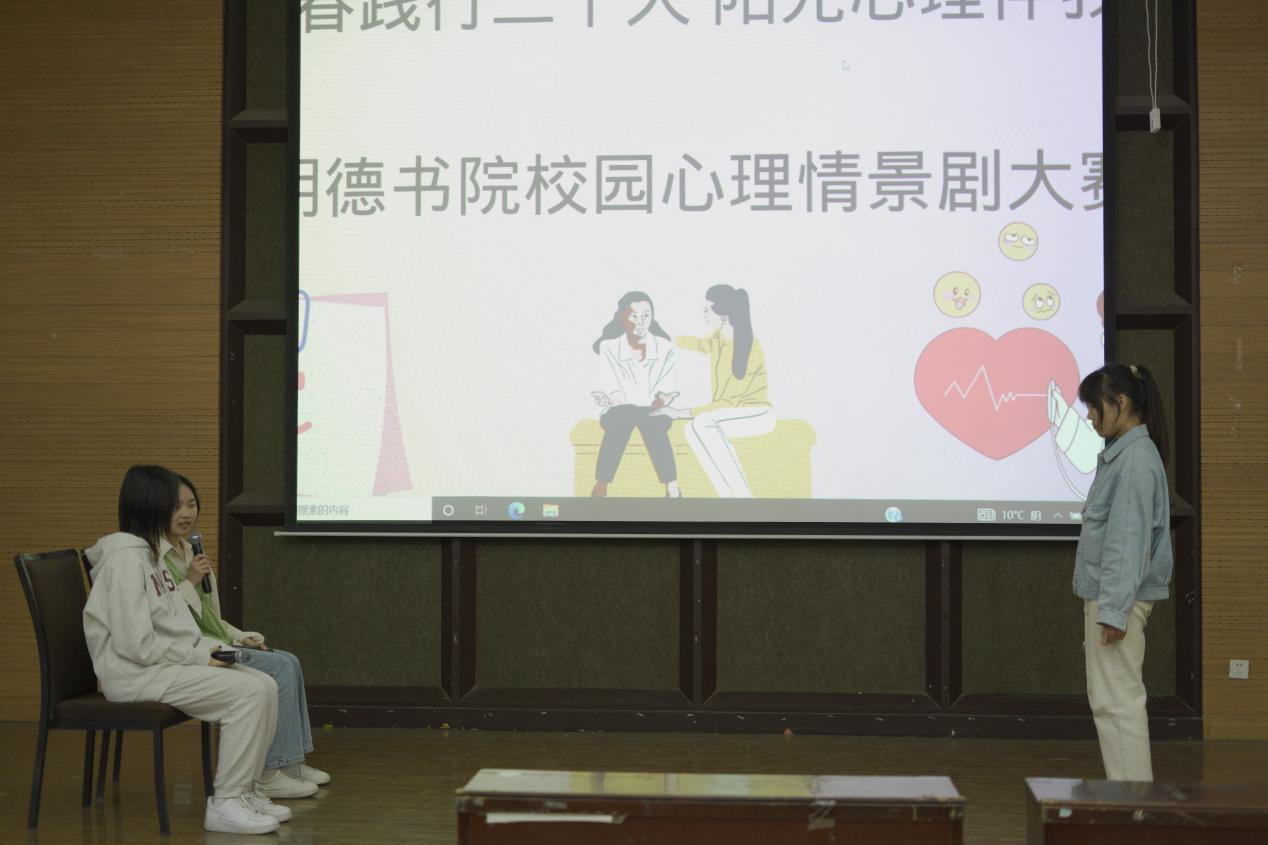 4月25日晚,p站视频 心理情景剧大赛在小礼堂隆重开幕。本次活动主题为“青春践行二十大,阳光心理伴我行”。比赛邀请书院辅导员作为评委,并设计了小程序让观众进行现场投票。