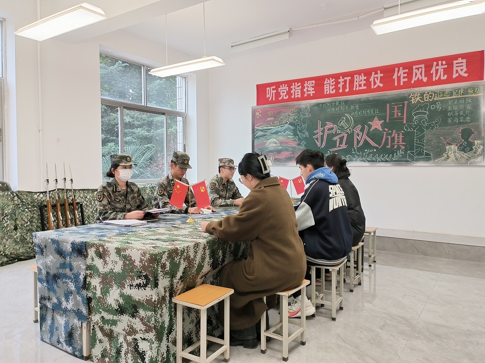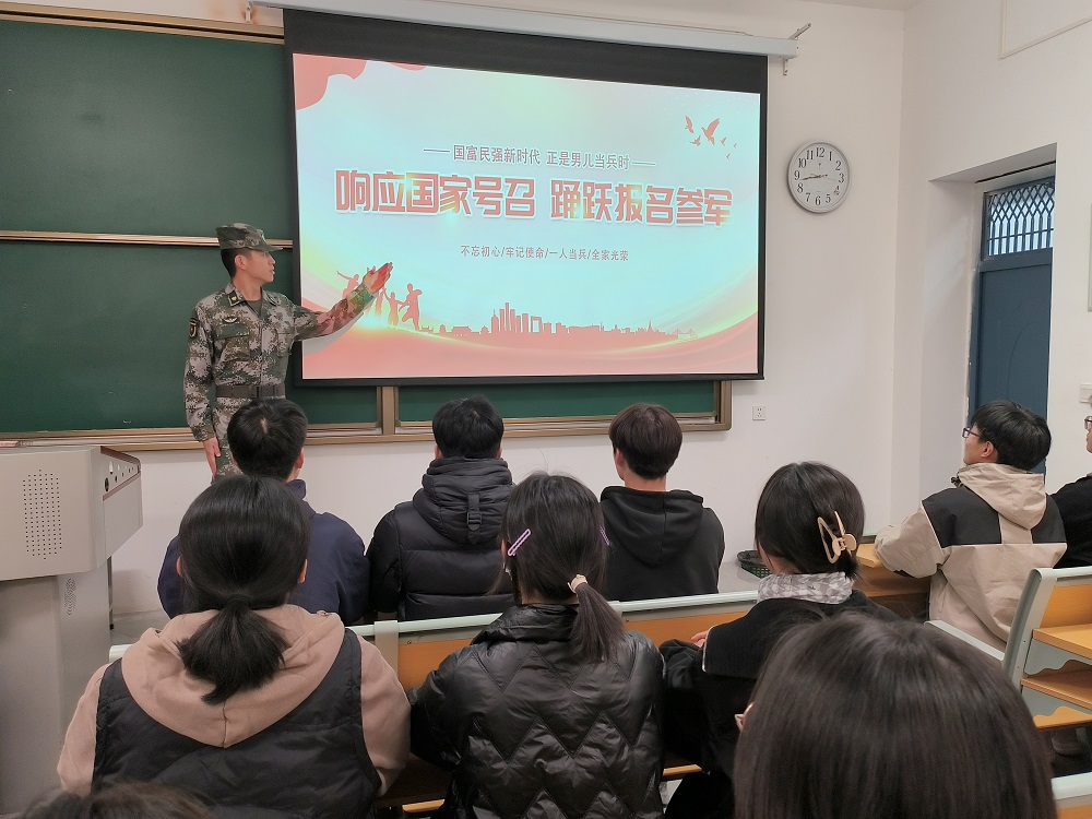 强军必须要强兵,强兵必先征好兵。书院抓住高校毕业季时机,开展征兵宣传动员大会、面对面交流等活动,充分激发大学生携笔从戎、参军报国的热情。在宣传活动现场设立咨询台、摆放宣传展板、发放宣传手册,书院辅导员为学生介绍服役待遇、退伍补偿及学业、择业上的优惠政策,使大学生们更加了解参军的意义和价值。同时,书院挑选了多名优秀退役复学大学生参加宣传活动,现身说法为同学们讲述在校参军、两年磨砺、军营趣事、退役复学等方面的精彩故事,让宣传活动更接地气、更有人气,使前来咨询的同学们收获满满。活动现场气氛热烈,学生积极踊跃报名。一名明年即将毕业的同学表示:“报名流程清晰,优惠政策动人,我希望自己能追随学长学姐的脚步光荣参军,报效祖国。”