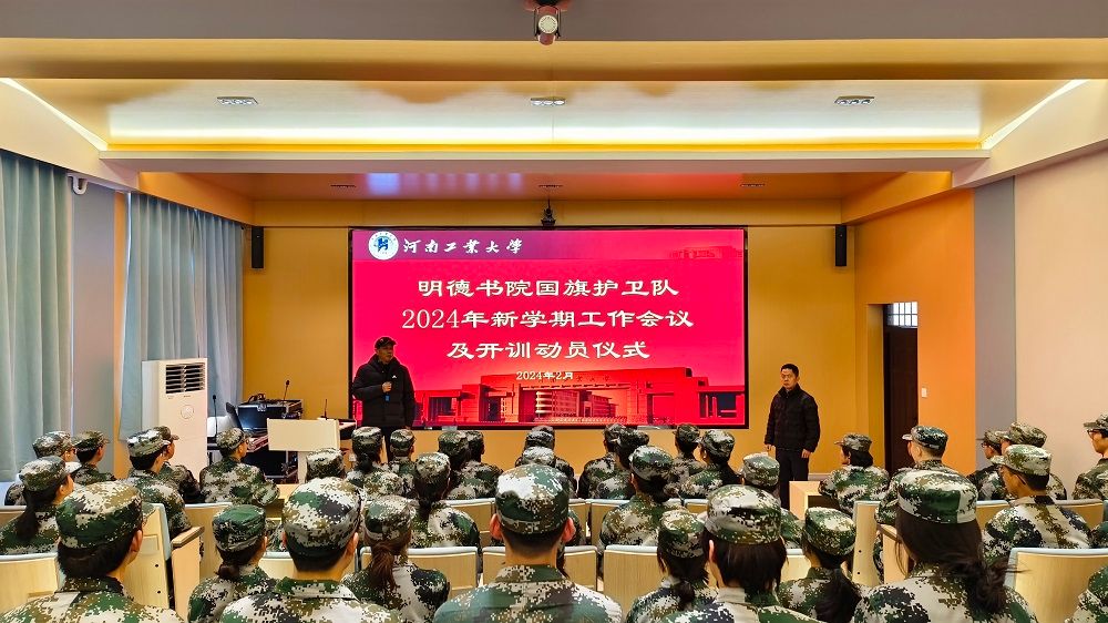 国旗护卫队在实验楼多功能厅严密组织召开2024年度新学期工作会议及开训动员仪式,助推新年度训练工作开好局、起好步,全面掀起练兵热潮。谷保材老师主持会议,书院学工办主任、国防预备役党支部书记王荣健老师做动员讲话,全体队员参加会议。