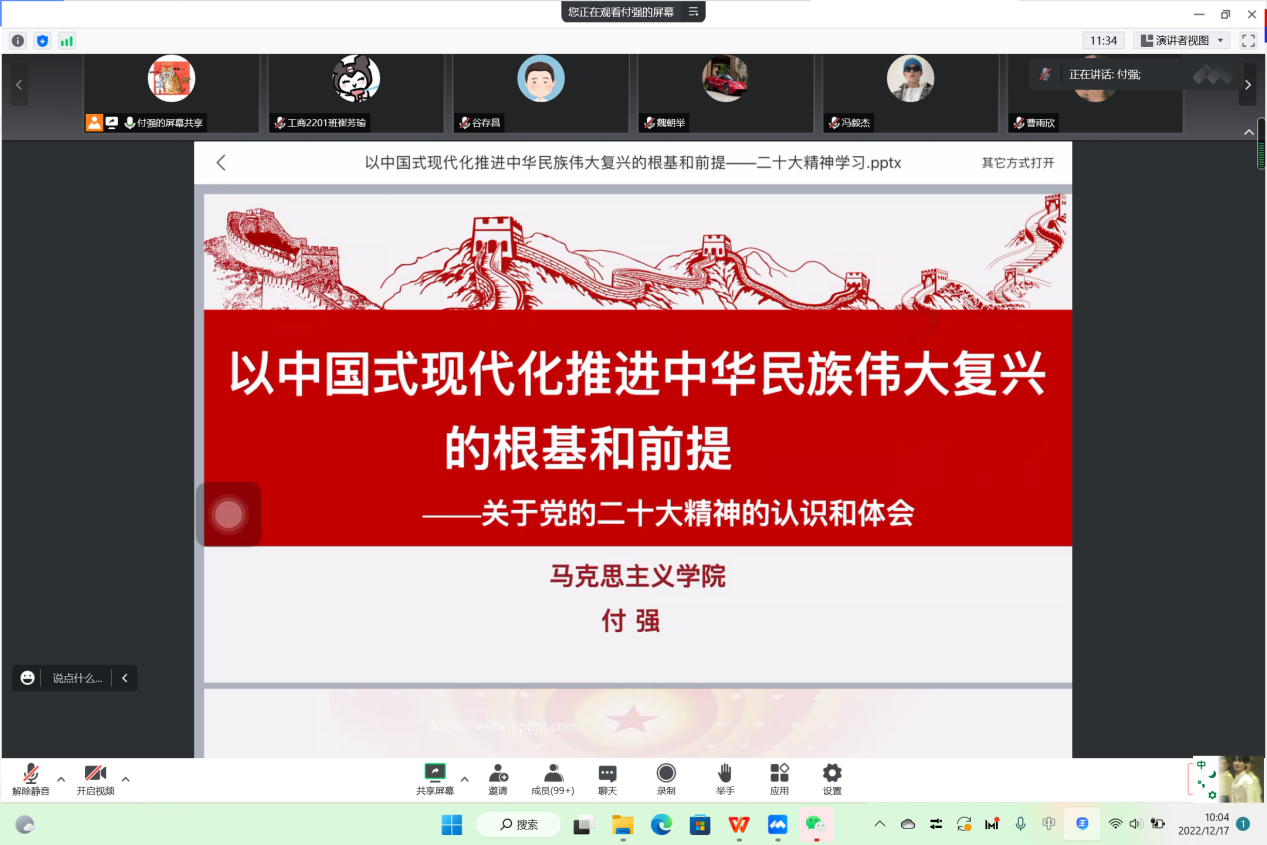 12月17日上午,p站视频 通过线上会议的形式举行了学习贯彻党的二十大精神宣讲会,学校“党的二十大精神宣讲团”成员、马克思主义学院付强博士应邀为书院师生党员作宣讲报告。宣讲会由院党委书记魏朝举主持。