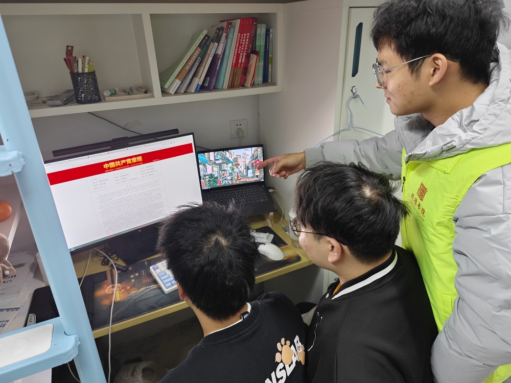 在活动过程中,学生第二党支部的学生党员通过走访宿舍,以饱满的热情与同学们进行交流,积极宣传党的二十大报告中关于青年工作的新要求和习近平总书记对青年学生提出的殷切期望,激励同学们要找准人生航向,坚定听党话、跟党走的理想信念。同时,要求同学们要遵守校纪校规,维护社会公德,要把内务卫生和宿舍安全建设、宿舍文化和精神风貌建设作为重点,把解决宿舍“脏乱差”作为突破口,营造和谐美好的宿舍风气。他们还逐一了解了同学们的思想、学习、生活等各方面的情况以及存在的问题,并结合各自的学习成长经历,分享了自己的经验。最后,他们提醒同学们加强宿舍安全管理,提高安全防范能力,保持身心健康。