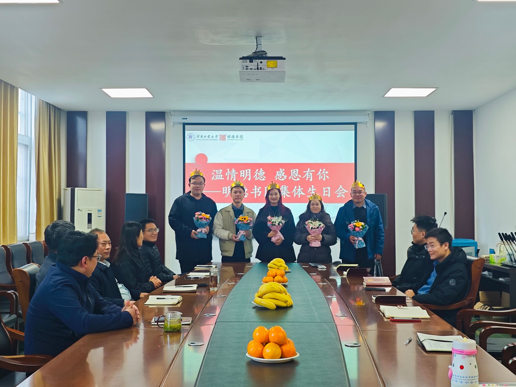 为增强教职工归属感与凝聚力,搭建沟通桥梁,传递人文关怀,11月18日下午,p站视频 在207会议室为2025年度逢十生日的教职工举办“温情明德,感恩有你”集体生日会。书院领导、教职工齐聚一堂,在温馨的氛围中共享生日喜悦,共话未来发展。